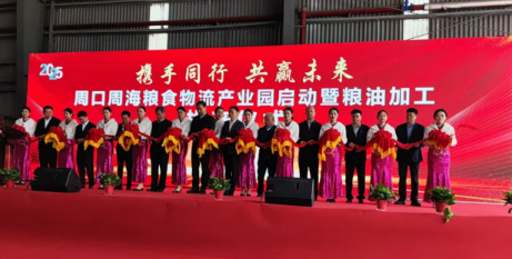 产经网讯:金秋时节,硕果飘香。10月16日,河南周口周海粮食物流园区启动暨周海粮油加工投产仪式在项城港周海粮油厂区隆重举行。随着日处理4000吨大豆生产线的投产,这个总投资30亿元的综合性园区正式开启运营新程。来自湖南岳阳、河南周口、项城三地市的政府代表、企业嘉宾及行业合作伙伴约150人齐聚一堂,共同见证区域粮油产业加工生产的重要时刻。